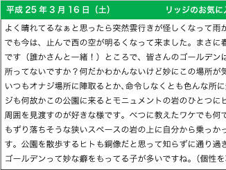 ゴールデンに関する事ならどんな事でも結構です。皆さんからのお便りお待ちしています。