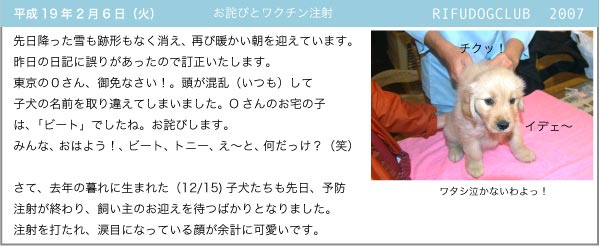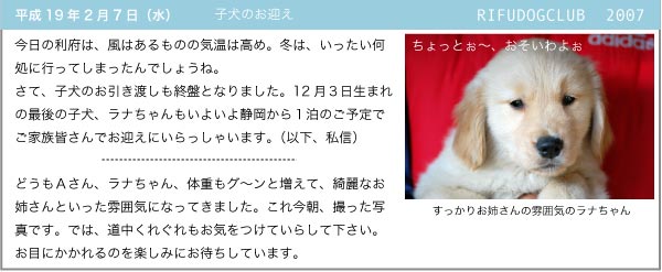 Copyright (C) 2006 RIFUDOGCLUB. All rights reserved. Since Oct.15.1999 Golden Retriever.