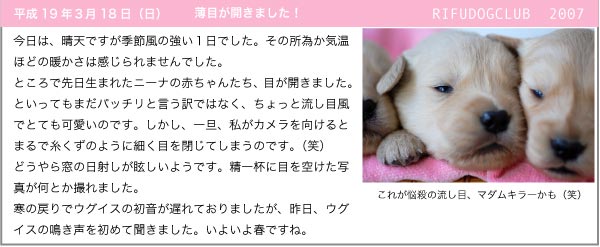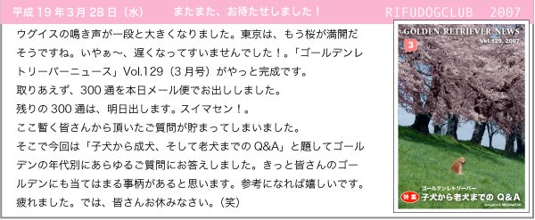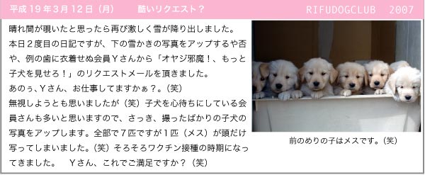 Copyright (C) 2006 RIFUDOGCLUB. All rights reserved. Since Oct.15.1999 Golden Retriever.