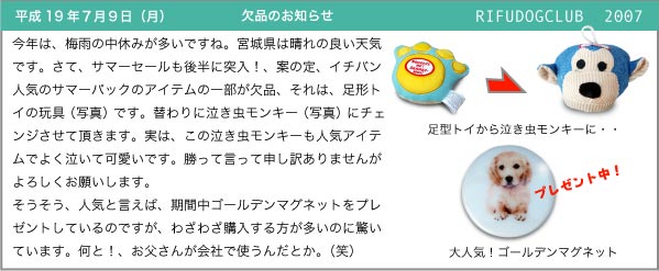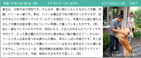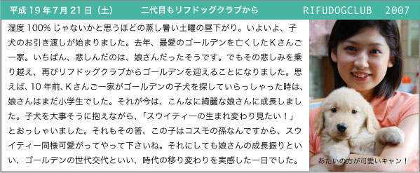 Copyright (C) 2006 RIFUDOGCLUB. All rights reserved. Since Oct.15.1999 Golden Retriever.