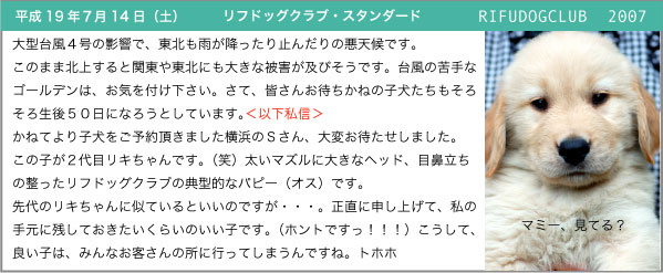 ゴールデンレトリバー専門ブリーダー リフドッグクラブTOP