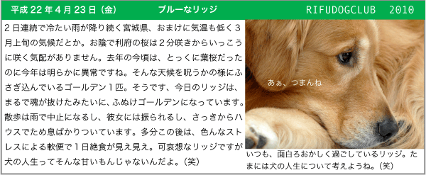 Copyright (C) 2006 RIFUDOGCLUB. All rights reserved. Since Oct.15.1999 Golden Retriever.