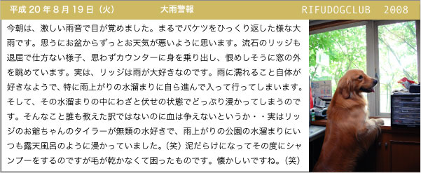 Copyright (C) 2006 RIFUDOGCLUB. All rights reserved. Since Oct.15.1999 Golden Retriever.